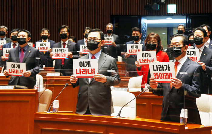 민주당의 강경 모드에 국민의힘은 대여 투쟁 수위를 끌어올리고 있다. 공수처장 후보에 대한 칼날 검증도 예고했다. 이날 문재인 대통령이 국회 예산안 시정연설에서 개혁 의지를 강조할 것으로 예상되는 만큼 특검 고삐를 더 당기는 분위기다.