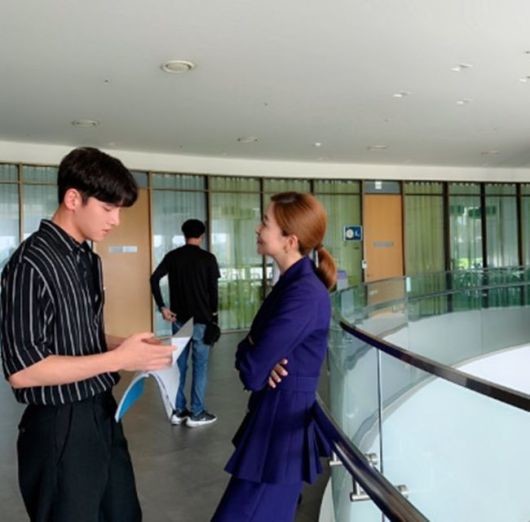 사진 속에서 지창욱은 대본을 보고 있고, 윤세아는 다른 곳을 바라보고 있다. 셔츠를 입고 있는 지창욱과 파란색 의상을 입고 있는 윤세아의 매력적인 옆태가 빛이 난다.