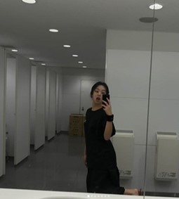 공개된 사진에는 트와이스 막내인 채영의 사랑스런 모습이 담겨있다. 화장실에서 발랄한 표정을 지으며 거울 셀카를 찍는 모습이 사랑스럽다.