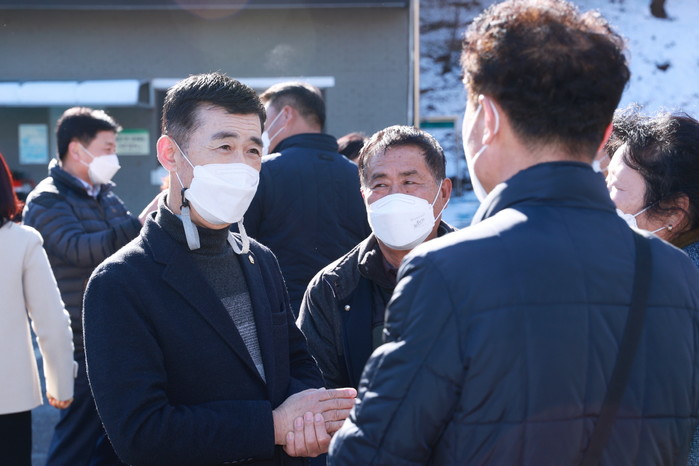 | ▲ 임일혁 경기 광주시의장(왼쪽)이 시민의 애로사항을 경청하고 있다.(사진제공=광주시의회) |