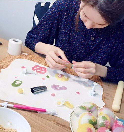 공개된 사진에는 섬섬옥수로 송편을 빚는 윤아의 모습이 담겼다.