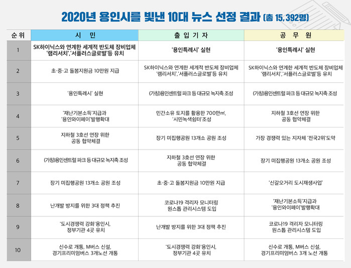 시민이 뽑은 용인시 10대 뉴스의 주요 내용은 다음과 같다.