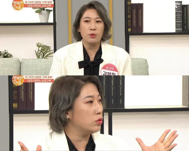28일 방송된 채널A 시사교양프로그램 ‘행복한 아침’에서는 김영희가 출연해 가족 빚투 이후 심경을 고백했다.