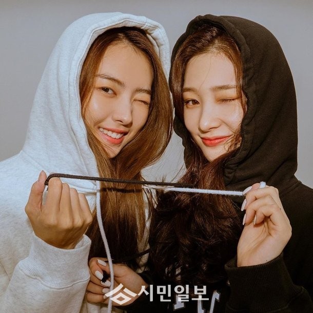 사진 속 임나영과 정채연은 흰색, 검은색 후드티셔츠를 입고 서로의 후드티 끈을 장난스럽게 잡아당기고 있는 모습으로 눈길을 모았다.