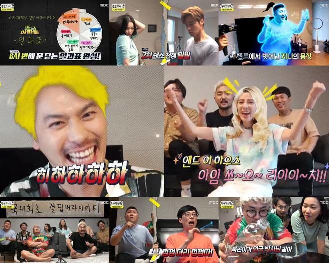먼저 유재석과 조세호는 ‘릴레이 카메라’를 직접 세팅하고 ‘조의 아파트’에 초대한 멤버들이 함께 즐길 수 있는 게임들을 준비했다. 두 손 가득 나눠 먹을 음식들을 들고 ‘조의 아파트’에 모인 이들은 기존의 촬영과는 다른 상황에 어색함을 감추지 못했다.