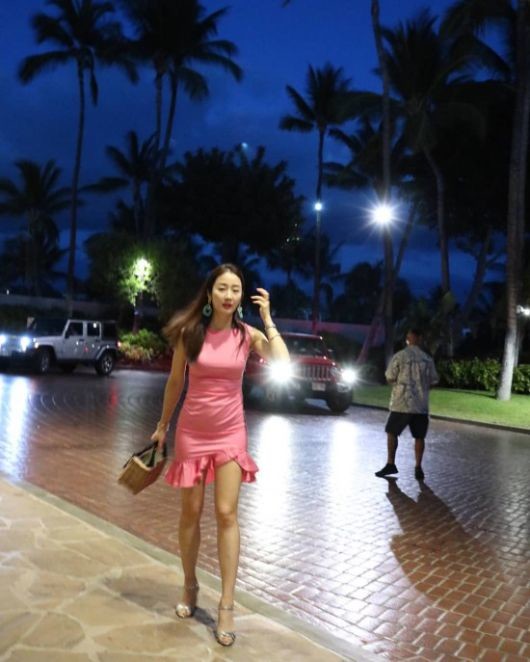 공개된 사진 속 김경화는 야외에서 핑크색 원피스를 입고 걷고 있는 모습. 아찔한 초미니 사이 탄탄한 각선미가 시선을 사로잡는다.