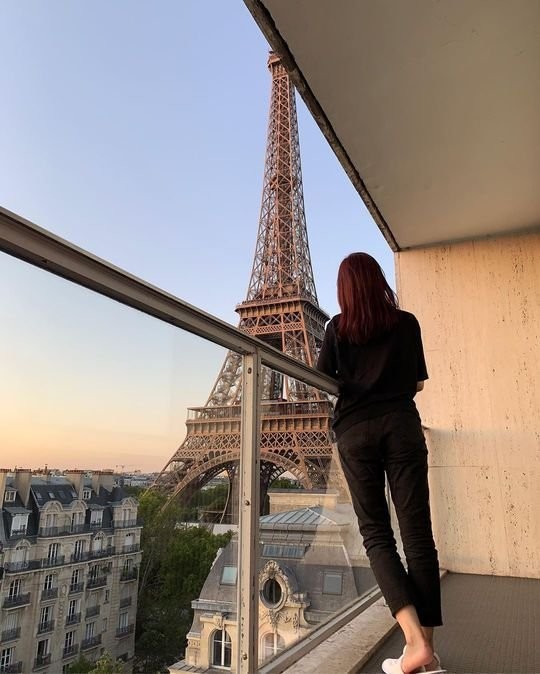 공개된 사진에서 강한나는 프랑스 파리의 에펠탑을 배경으로 여유로운 휴가를 즐기고 있다. 특히 강한나의 작은 얼굴에 롱다리가 눈길을 사로잡는다.
