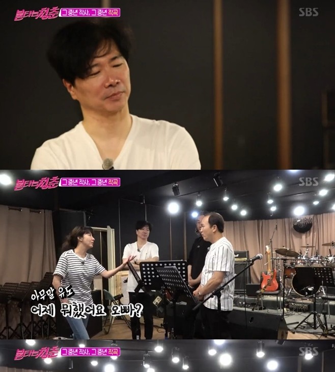 '불타는 청춘' 장호일이 내시경 밴드 신곡 작사에 열중했다.