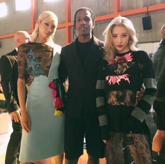선미가 모델 수주와 팝스타 에이셉 라키와 만났다.