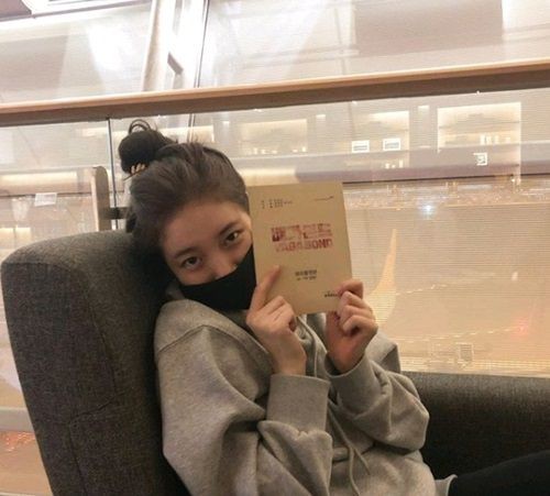 공개된 사진에는 편한 차림으로 머리를 올려묶고 마스크를 쓴 민낯의 수지가 '배가본드' 대본을 들고 카메라를 바라보고 있는 모습이 담겨 있다.