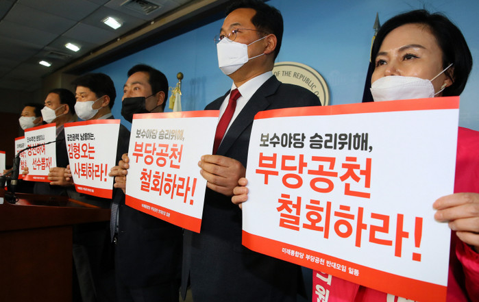 최근 공천심사 과정에서 현역인 민경욱 의원을 컷오프시키고 탈당 전력이 있는 유승민계 민현주 전 의원을 단수추천한 인천연수을 결과에 대해서도 형평성 논란이 일고 있다.