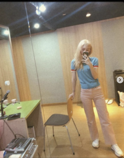 캐주얼 차림이지만 늘씬한 몸매와 황금 비율이 돋보인다. 지호는 신비로운 금발 롱헤어를 늘어뜨린 채 셀카 삼매경에 빠져 있다.