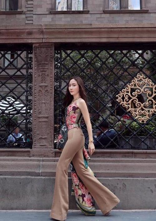 공개된 사진 속에는 힙라인이 도드라지는 하의와 꽃무늬 민소매를 입고 거리를 걷는 제시카의 모습이 담겨있다.