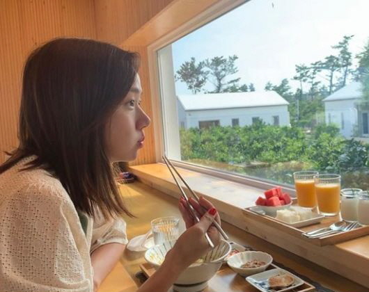 공개된 사진에는 창 밖을 바라보며 식사를 하고 있는 고성희의 모습이 담겨있다. 특히 완벽한 옆태를 자랑해 시선을 사로잡는다.