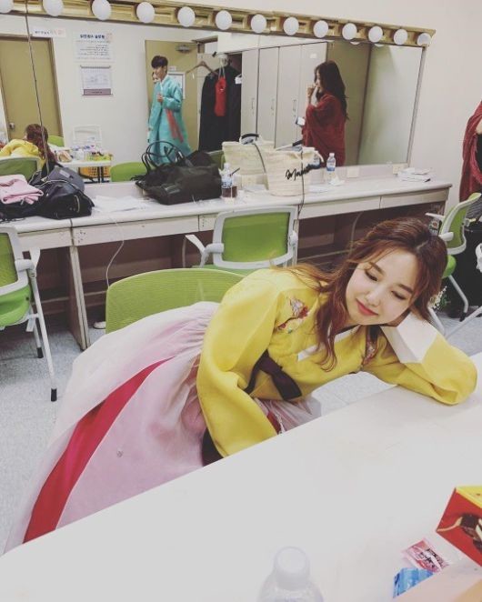 공개된 사진 속에는 대기실 안에서 한복을 입고 휴식을 취하고 있는 이혜성의 모습이 담겨 있다. 이혜성은 한복을 입고 단아한 미모를 뽐내 눈길을 끌었다.