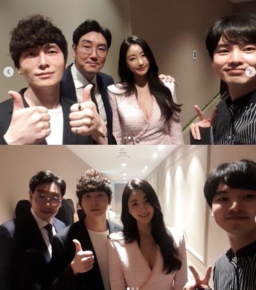 사진 속 김사랑은 긴 생머리로 청순미를 자랑하며 환하게 웃고 있다. 배우 조진웅은 김사랑의 어깨에 손을 올리며 미소를 지었다.