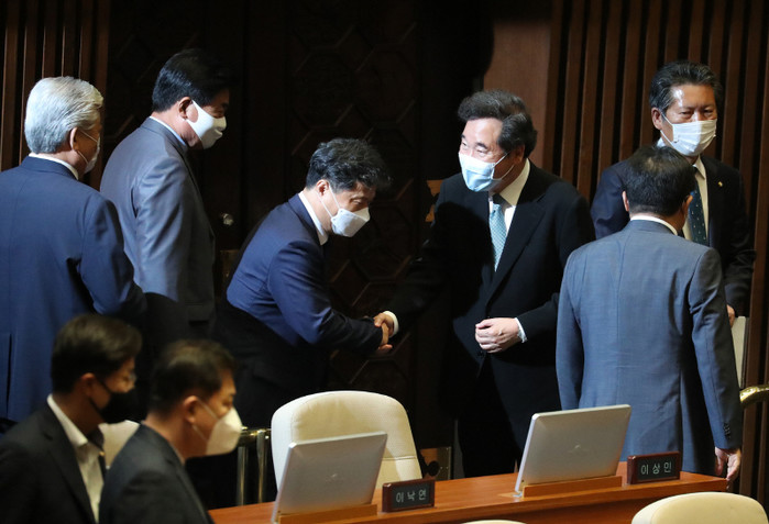 민주당 관계자는 14일 “김부겸ㆍ우원식ㆍ홍영표 등 당권주자들이 ‘당권-대권 분리'를 앞세워 '이낙연 포위구도'를 만들고 있지만 이 의원 출마를 제지하지 못하는 것 같다"며 "특히 대선 주자 중 하나인 김부겸 전 의원이 대표직 당선을 전제로 꺼내든 대선 불출마 카드가 어느 정도 약발을 발휘할 수 있을 지 여부가 관전 포인트다"라고 밝혔다.