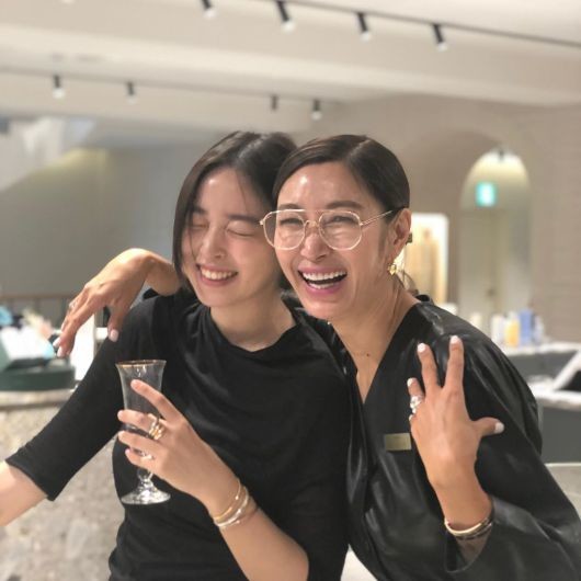 사진 속 모녀는 올블랙 의상을 매치한 채, 환한 미소를 짓고 있어 훈훈함을 더했다.