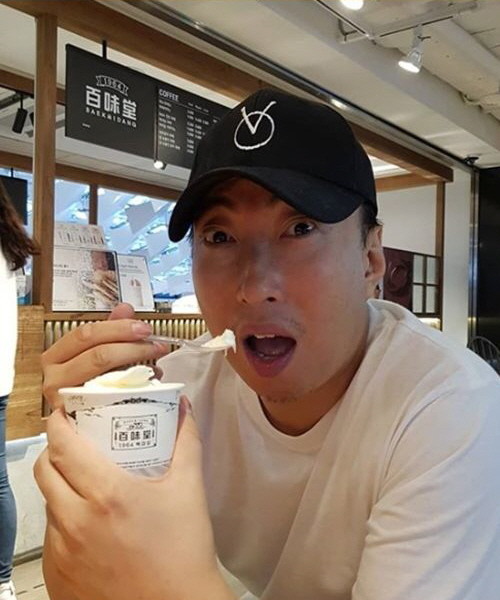 사진 속 박명수는 비행기 안에서 포즈를 취했다. 아이스크림을 먹으며 코믹한 표정을 짓기도 했다.