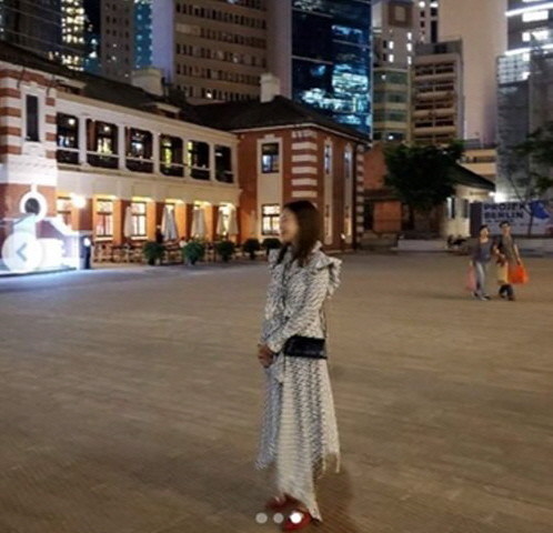 사진 속 김정은은 원피스를 입고 포즈를 취하고 있다. 흔들리는 사진에서도 청순한 매력을 자랑했다.