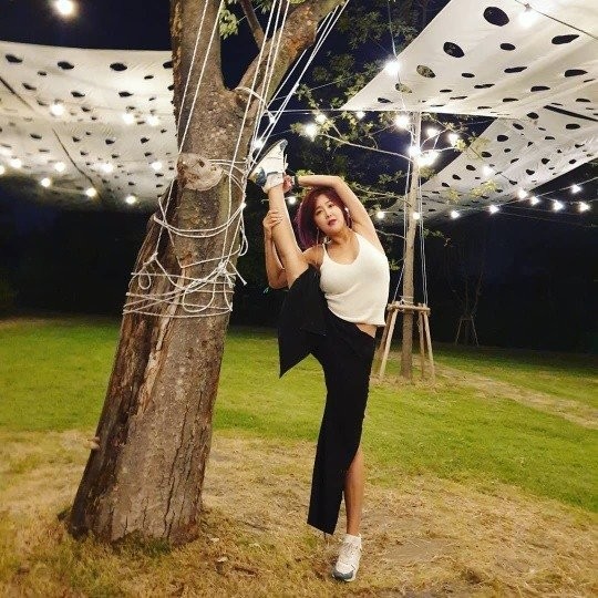 공개된 사진 속 솔비는 카메라를 응시하며 포즈를 취하고 있는 모습. 다리를 위로 찢어올린 유연한 자세가 보는 이들을 감탄케 했다. 여유 가득한 분위기와 편안한 일상이 팬들에게도 흐뭇함을 안겼다.