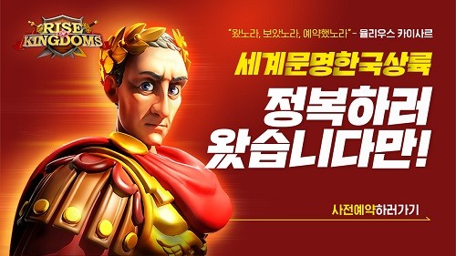 이번 <라이즈 오브 킹덤즈>에서는 대한민국을 비롯해 중국, 로마, 독일, 일본, 프랑스 등 11가지 실제 문명을 플레이어 취향에 따라 선택할 수 있으며, 시대에 흐름에 따라 석기시대부터 청동기, 철기, 암흑, 봉건 시대까지 발전시켜 나갈 수 있다. 또한 직접 성장시킨 문명을 통해 전략과 전술을 겨루는 실시간 전투를 즐길 수 있으며, 각 문명을 대표하는 실제 역사 속 영웅들을 만나 볼 수 있어 새로운 재미를 더할 예정이다.