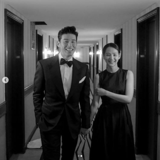 공개된 사진에는 턱시도와 드레스를 차려입은 김무열과 윤승아가 손을 꼭 잡고 있는 모습이 담겨 있다. 김무열과 윤승아는 밝게 웃으며 기뻐하고 있다. 서로를 향한 애정이 넘치는 두 사람의 모습이 인상적이다.