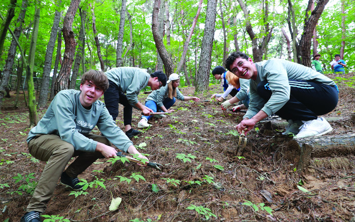 | ▲ 2019년 진행된 '제16회 함양산삼축제 외국인 원정대' 참가자들이 산삼캐기 체험을 하고 있다. (사진제공=함양군청) |