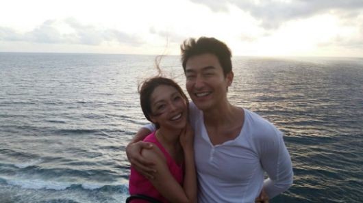 사진 속 김인석은 안젤라 박을 끌어안으며 행복하게 웃고 있다.