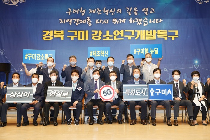 | ▲ '강소연구개발특구 스마트 제조혁신 5G 특화도시 조성 업무협약식' 모습. (사진제공=구미시청) |
