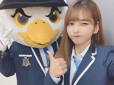 이하은 치어리더가 한화이글스 위니와 찍은 인증샷을 공개했다.