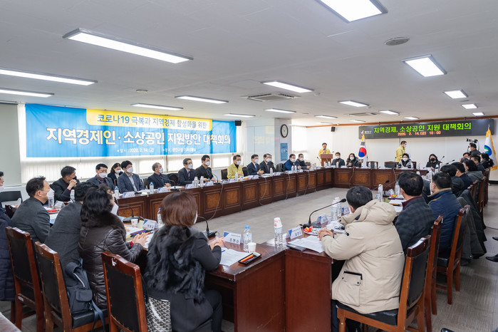 더불어 구는 지난 14일 구청 기획상황실에서 광진구상공회, 성동세무서 등 관련기관 19개 단체 임원 및 관계자 등이 참석한 가운데 ‘지역경제인·소상공인 지원 대책회의’를 개최했다.
