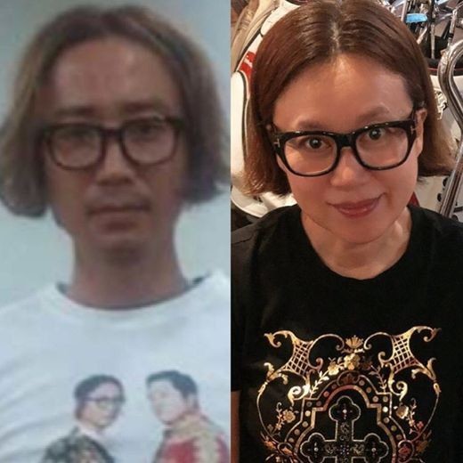 공개된 사진은 가수 정재형과 박미선의 모습을 나란히 편집한 것. 짧은 단발머리에 두꺼운 뿔테 안경을 쓴 두 사람의 외모가 실제로 매우 흡사해 보는 이들을 폭소케 한다.
