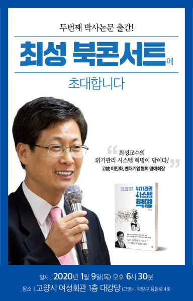 최성 전 시장이 이번에 출간한 <위기관리시스템 혁명>은 자신의 두 번째 박사논문인 <스마트 국가위기관리시스템의 도입 및 정착방안 – 4차 산업혁명의 성과를 중심으로>를 수정, 보완한 것으로, 한일경제전쟁의 해법과 더불어 지역에서 추진하고 있는 창릉 3기 신도시와 행신 중앙로 역사 신설 등에 대한 내용도 다수 포함하고 있는 것으로 알려졌다.