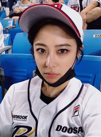 사진 속 박희본은 두산 유니폼에 모자를 쓰고, 검은 마스크를 쓴 채 관중석에 무표정으로 앉아있다. 이어진 사진에서 선수 플랜카드를 배경으로 찍은 셀카도 게재했다.