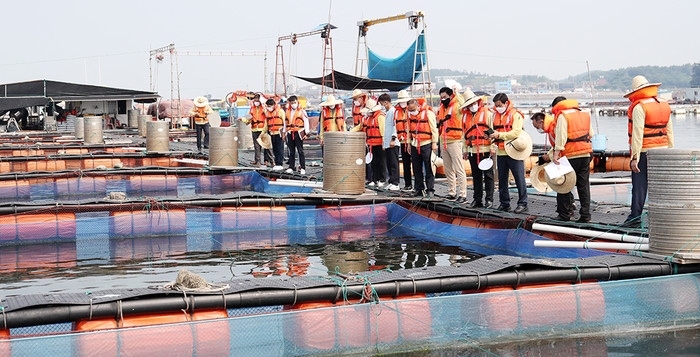 의원들은 어종의 사육상태 및 고수온에 대비하기 위해 설치된 산소공급기와 차광막 등을 점검한 뒤 어가의 애로사항을 청취했다.