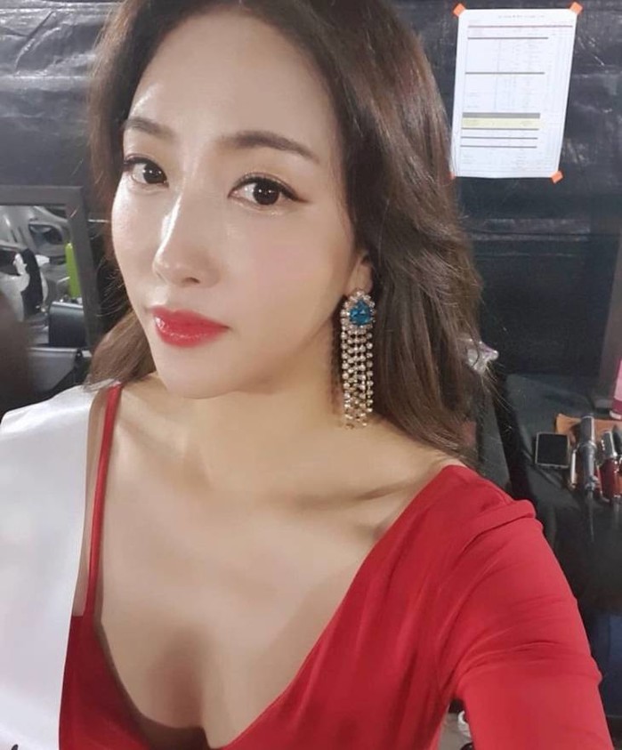 공개된 사진 속 숙행은 아찔 가슴골이 보이는 드레스를 입고 카메라를 쳐다보고 있는 모습이 담겨 있다.