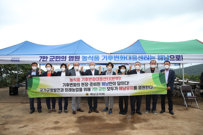 해남군의회는 '한반도 기후변화의 관문이자 전초지인 해남은, 전국 최대의 경지면적과 친환경 단지를 보유한 농군으로, 기후변화에 따른 이상기후 피해를 예측하고 대비할 수 최적의 장소로서, 2년 전부터 7만 군민 모두의 희망과 염원으로 결집된 해남만이 기후변화로부터 우리나라의 미래농업을 지켜내고 선도해 나갈 수 있는 유일한 곳'이라며 전라남도 평가단에 해남군 유치 당위성을 적극 호소했다.