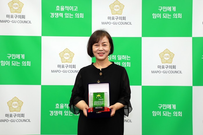 [시민일보 = 홍덕표 기자] 서울 마포구의회(의장 조영덕) 김영미 의원(더불어민주당, 망원동·연남동·성산1동)이 성미산생활체육부, 역도, 헬스부 회원들로부터 감사패를 받았다.