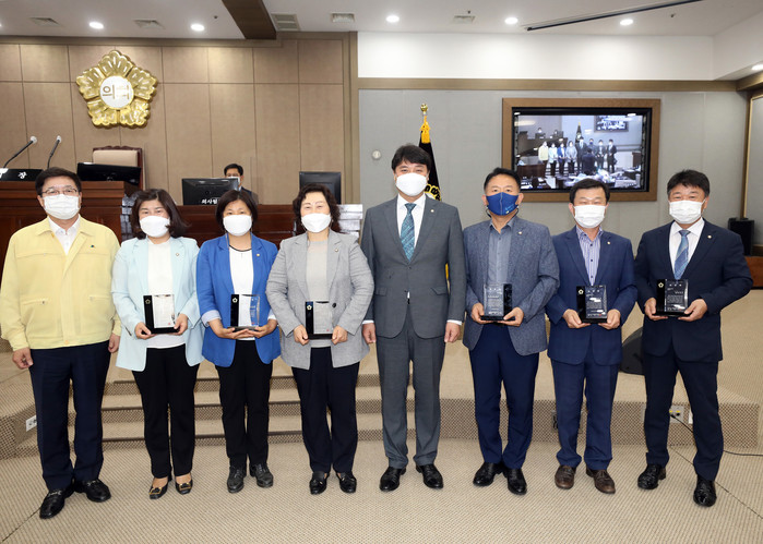 표창 수여는 제360회 제1차 정례회 개회식 전에 진행됐다. 수상한 의원들은 각각 ▲행정 개선 분야 ▲지역현안 해결 분야 ▲의정활동 분야 ▲주민참여 소통 분야 ▲지역경제 활성화 분야 ▲공약실천 분야 등에서 시민과 함께하는 생활정치를 펼쳐 지방자치 발전에 기여한 공을 인정받았다.