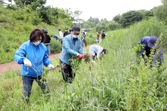 [수원=임종인 기자] 경기 수원시의회 도시환경위원회 이현구 위원장과 황경희 부위원장이 최근 영통구 원천리천 일원에서 민·관 합동으로 생태계교란 야생식물 제거 작업에 나섰다.
