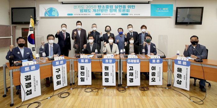 이날 토론회는 좌장을 맡은 도의회 기획재정위원회 원미정 위원이 토론회를 이끌었고, 이필근 부위원장, 정희시 위원, 도시환경위원회 장동일 위원장, 김진일 위원, 이용철 경기도 행정1부지사, 강관석 기후위기 경기비상행동 상임공동대표, 민간전문가 등이 참석했다.
