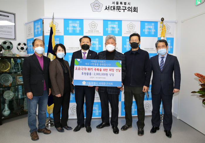[시민일보 = 홍덕표 기자] 서울 서대문구의회(의장 윤유현)는 코로나19로 인해 어려움을 겪고 있는 대구지역 시민을 위해 최근 긴급후원물품을 전달했다고 17일 밝혔다.
