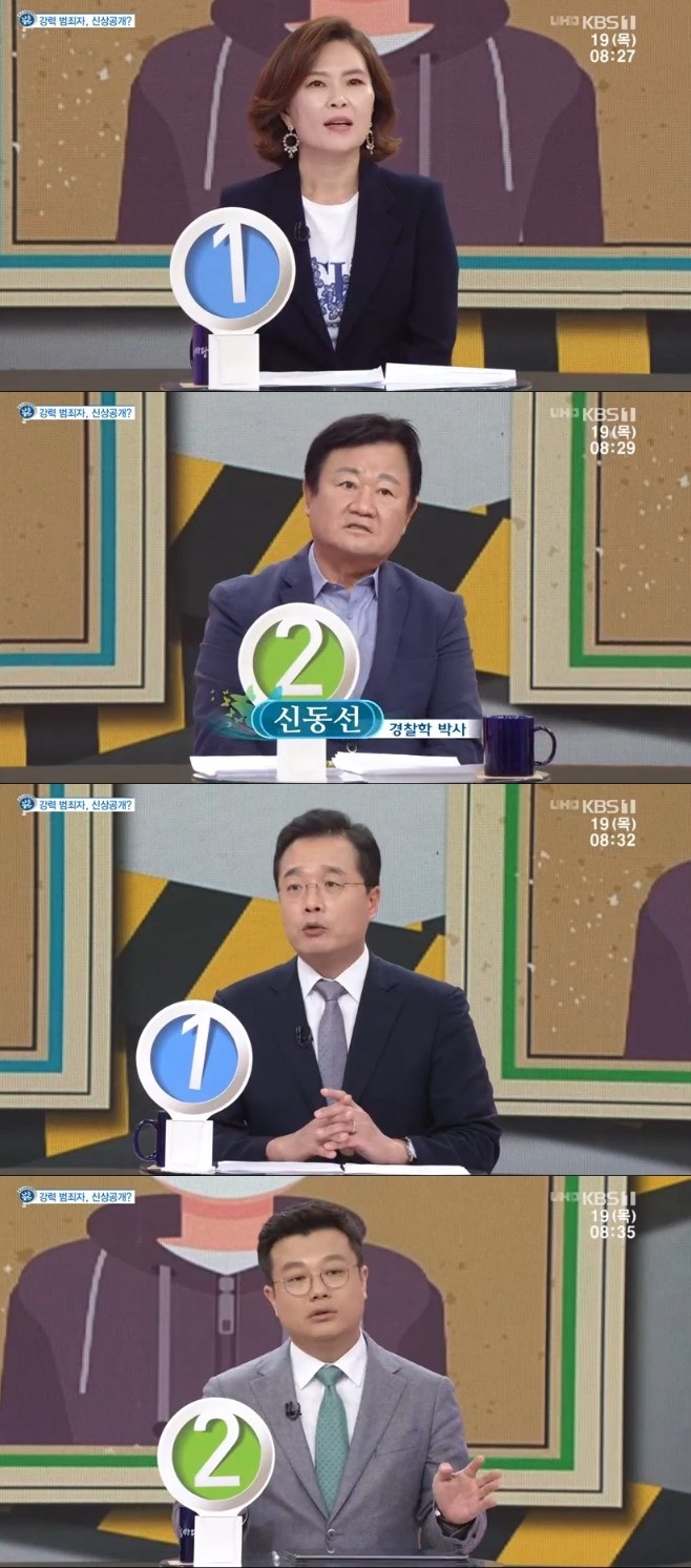 이날 방송에서는 양소영 변호사, 신동선 경찰학 박사, 고려대 정신건강의학과 교수 한창수, 아주경제 사회부 기자 장용진, 프로바둑기사 한해원 등이 출연해 ‘강력 범죄자 신상공개’를 주제로 찬반을 나눠 이야기해 화제가 됐다.