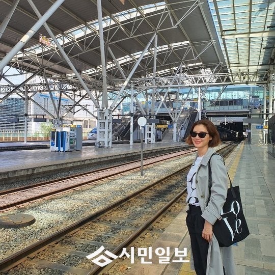 사진에는 기차역에서 자연스럽게 포즈를 취하고 있는 김성령의 모습이 담겨있다.