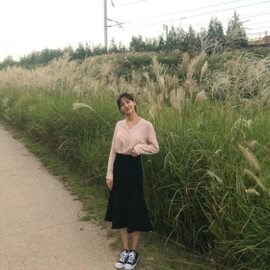 한지은은 자신의 인스타그램을 통해 "가을"이라는 글과 함께 두 장의 사진을 게재했다.