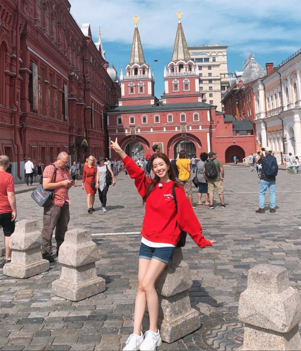 공개된 사진 속 진세연은 빨간 맨투맨과 핫팬츠를 입은 채 카메라를 향해 포즈를 취하고 있다. 특히 모스크바의 배경과 진세연의 상큼함이 잘 어우러진다.