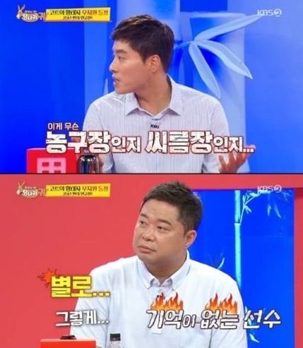 이어 우지원은 현주엽에 대해 "맨날 몸싸움만 했다. 슛을 던지는 걸 본 적이 없다. 농구장인지 씨름장인지 모르겠더라"라면서 디스했다. 현주엽은 우지원을 두고 "별로 그렇게 기억에 없는 선수다"라고 응수했다.