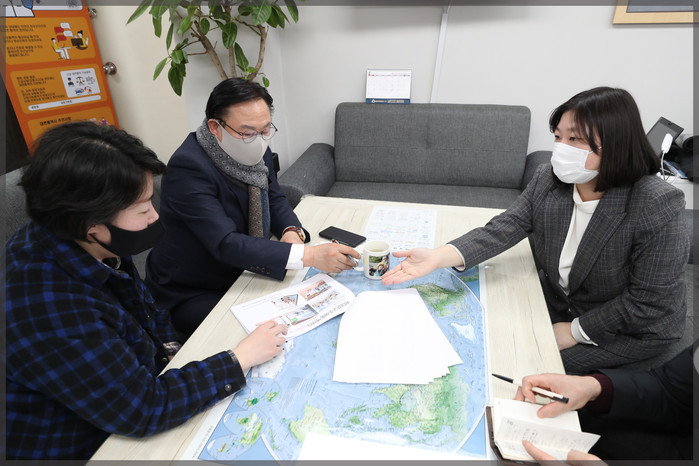| ▲ 최근 수어통역센터를 방문한 김일영 의장이 센터 관계자들과 센터 운영 등 애로사항에 대해 이야기를 나누고 있다. (사진제공=성북구의회) |
