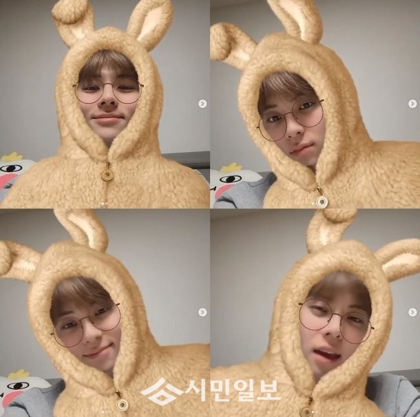 공개된 영상 속 황민현은 토끼 귀가 달린 어플을 활용해 귀여운 표정을 짓고 있는 모습으로 팬들을 사로잡았다.